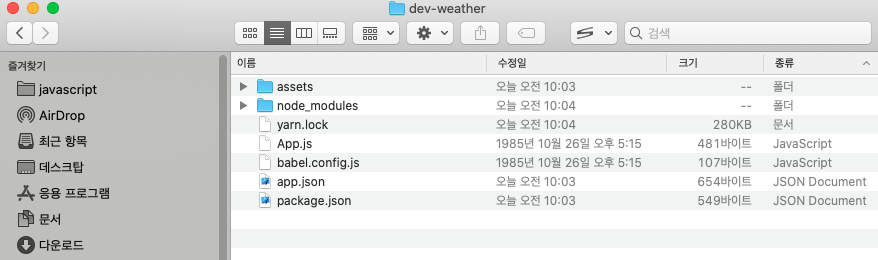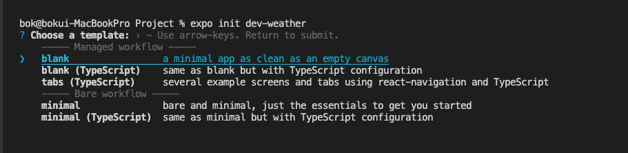 expo init dev-weather // dev-weather는 프로젝트명으로 변경 가능
