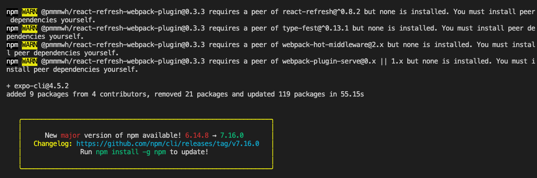 1. expo-cli 설치 (https://reactnative.dev/docs/environment-setup)