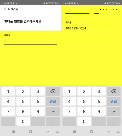 1 → 2 단계 이동 시 Keyboard 를 on 한 상태로 그대로 이동하였는데,