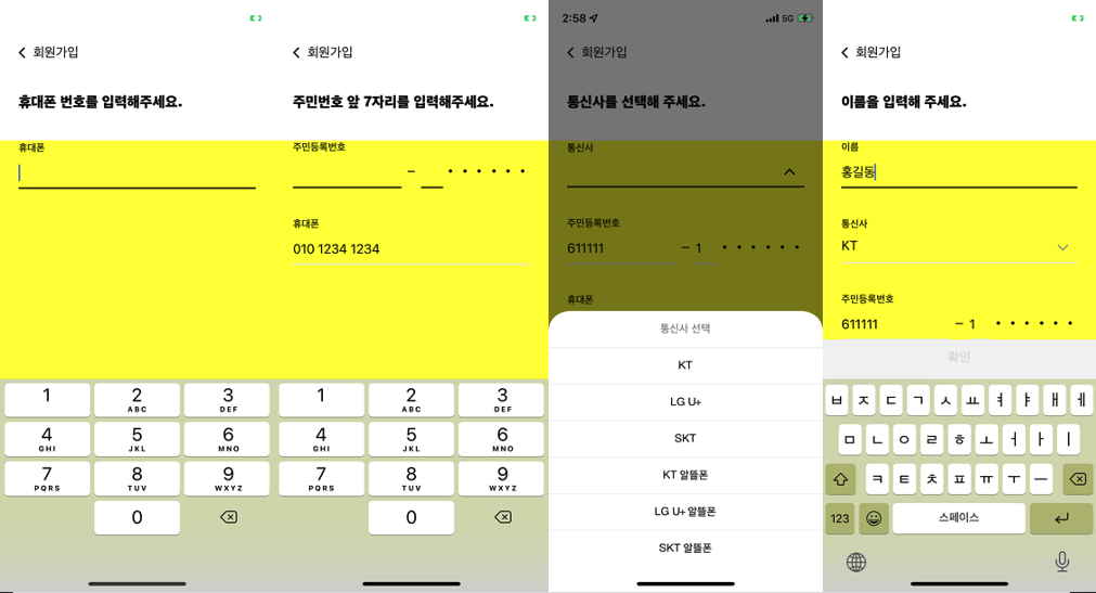 1. 휴대폰번호 입력