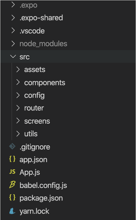 1. src 폴더 생성 후, 하위 폴더로 components / config / router / screens / utils 생성 및 assets 폴더 이동