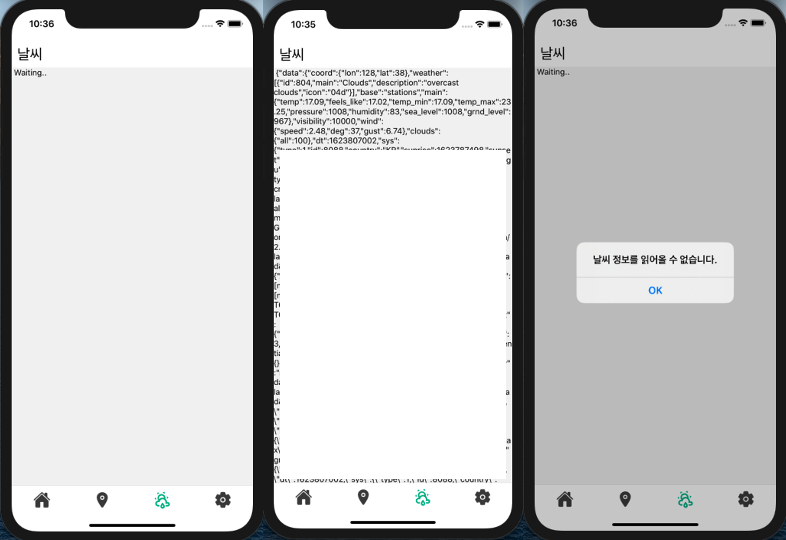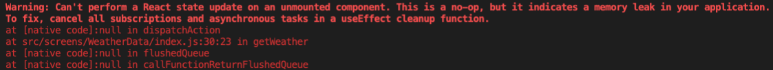 * 이유 : 서버에서 API response 값을 받아오기 전에 Bottom tab 을 이동하게 되면, [날씨] 화면이 unmount 된 상태에서 API response를 받게 되고, 이후 setCurrentWeather(), setTemp(), setIsLoading() 이 동작하게 되면서 불필요한 메모리를 사용함