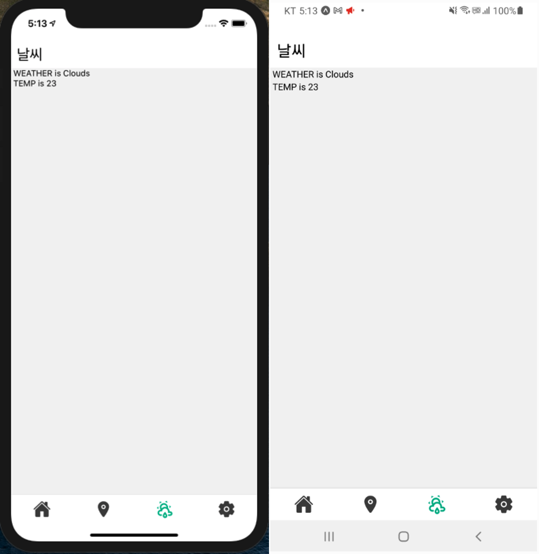 : <Text> 날씨 : {currentWeather} , 온도 : {temp} </Text>