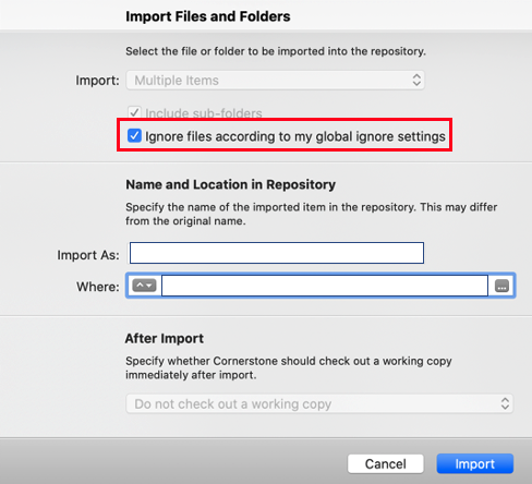 Cornerstone SVN 기준으로, [ignore files according to my global ignore settings] 를 체크 해제하여 업로드 할 것