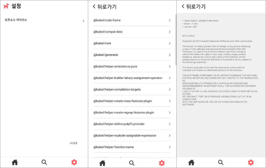 앱 개발 후 Open Source License 에 대한 고지가 필요한데, 사용한 License 들의 목록을 한번에 확인 가능한 라이브러리가 있다.