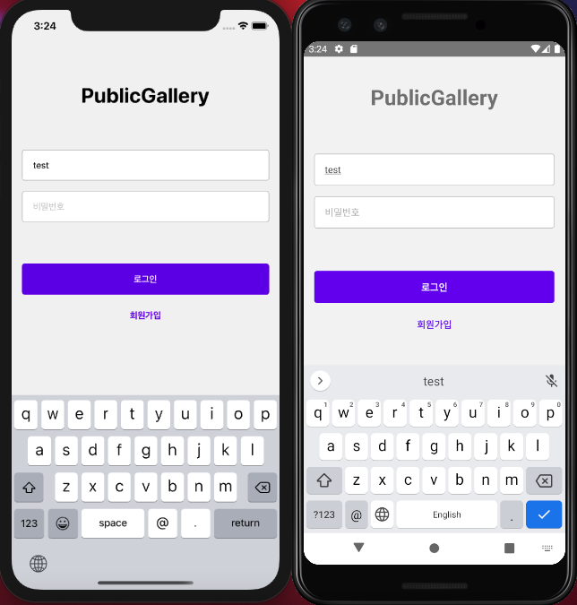 - iOS에서는 인풋에 포커스가 잡혀서 키보드가 나타나면 화면을 가리게 되고, 이 때 <keyboardAvoidingView> 를 사용