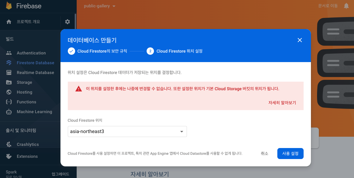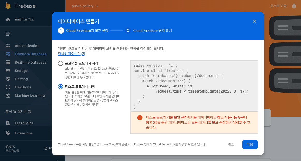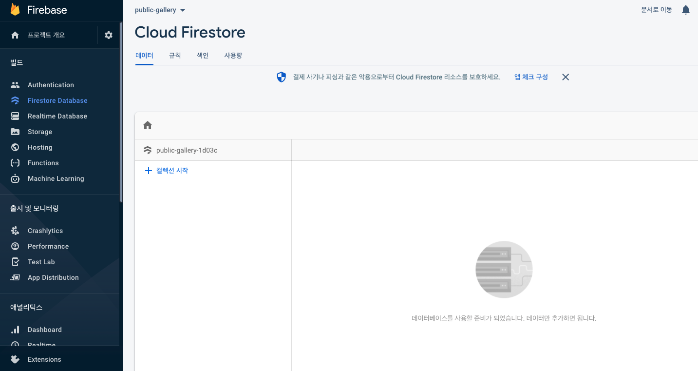 - Firebase에서 제공하는 NoSQL 베이스로 아래와 같이 생성함