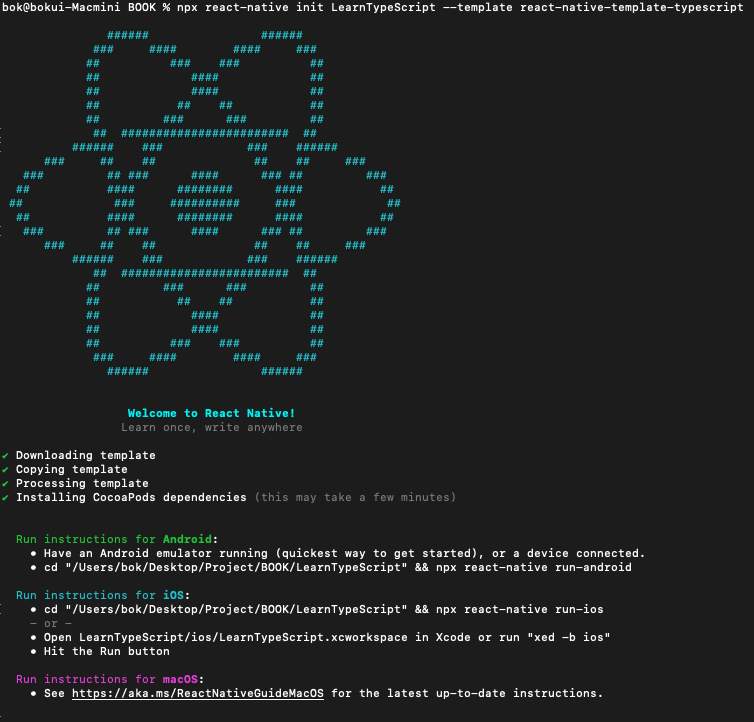 npx react-native init LearnTypeScript --template react-native-template-typescript