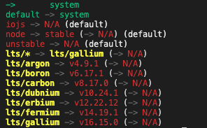$ nvm ls