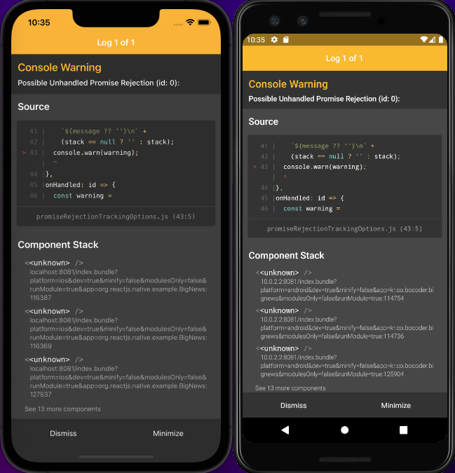 WARN Possible Unhandled Promise Rejection (id: 0):