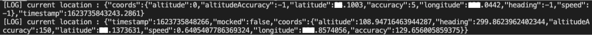 * 현재 위치값을 가져와 활용할 수 있으나, OS 별로 response 필드가 조금 상이하기 때문에 참고