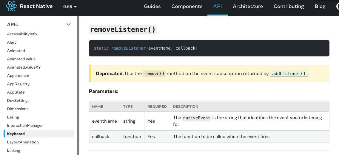 [React Native - ios/android] ERROR TypeError: _reactNative.Keyboard.removeListener is not a function