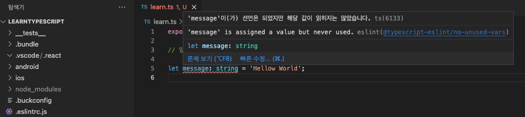 - TypeScript 코드의 확장자는 ts 또는 tsx